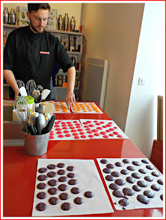 This time, I went to France, primarily, to take a cooking class. My granddaughter went with me and we stayed with my friends Betsy and Chris, who live in Nantes. Believe me, with all the amazing castle jaunts in the Loire Valley (known as the valley of castles) I was lucky to fit the class in! I learned to make the 'oh so French Macarons.' These cookies are sold absolutely everywhere there are patisseries or weekend markets. You see them used to dress shop windows because they are so colorful and whimsical. I must tell you though, they are not that easy to prepare, as we found out. Chris acted as our interpreter for the class since our chef spoke very little English.